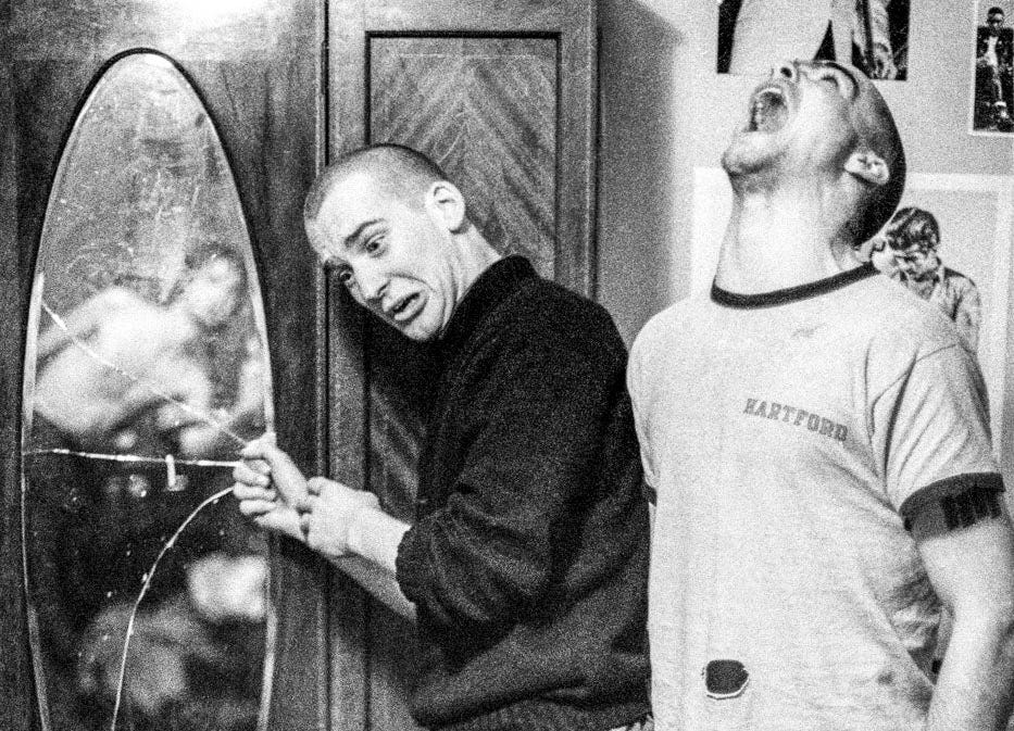 đˇ Ian MacKaye and Henry Rollins (with Dez Cadena in the mirror) in London on Black Flagâs first UK tour in 1981 by Spot